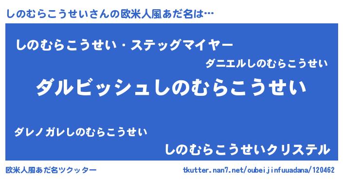| 男性向けラノベタイトル風あだ名 | 『しのむらこうせいという概念が存在しない退屈な世界 』 |