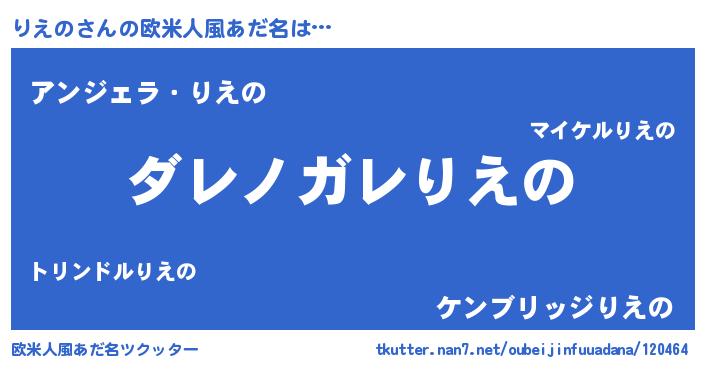 | 男性向けラノベタイトル風あだ名 | 『魔弾の王とりえの』『りえのの憂鬱』 |