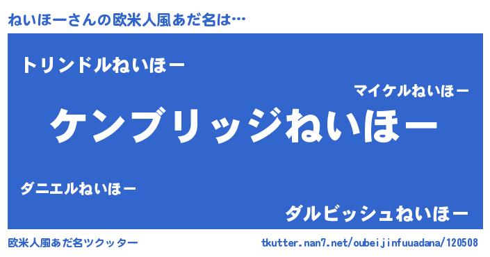 | ヘコむあだ名 | 『ねいほー(遠い目)』『ねいもー』 |