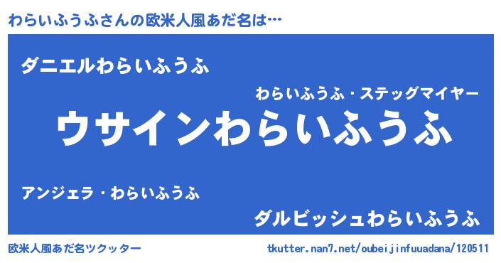 | 男性向けラノベタイトル風あだ名 | 『わらいふうふの嫁は女の子じゃないと思った?』 |