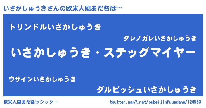 | ヘコむあだ名 | 『いさかしゅうき(遠い目)』『いさっぺ』 |