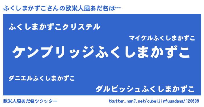 | 男性向けラノベタイトル風あだ名 | 『Re:ふくしまかずこから始める異世界生活』 |