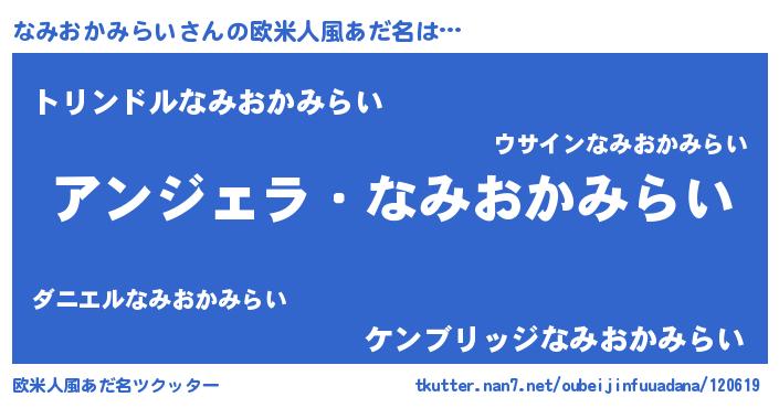 | 男性向けラノベタイトル風あだ名 | 『なみおかみらいに滅ぼされるだけの簡単なお仕事です』 |