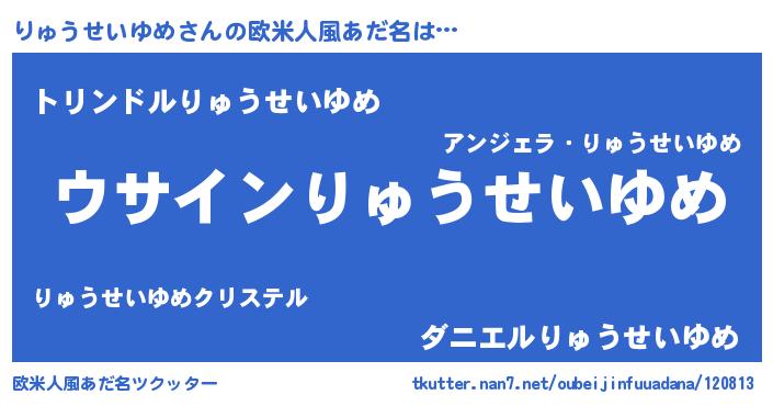 | 男性向けラノベタイトル風あだ名 | 『りゅうせいゆめの嫁は女の子じゃないと思った?』 |