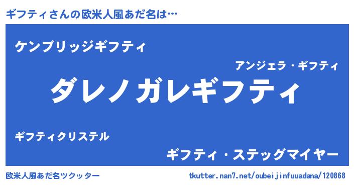 | ヘコむあだ名 | 『つくし』『ギフもー』『ギフ太郎』 |