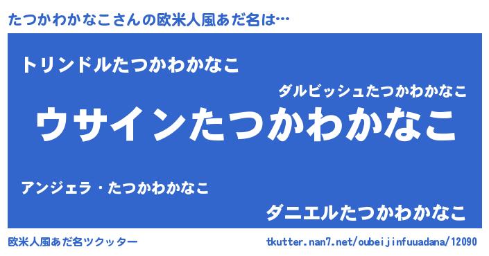 | 男性向けラノベタイトル風あだ名 | 『たつかわかなこの嫁は女の子じゃないと思った?』 |