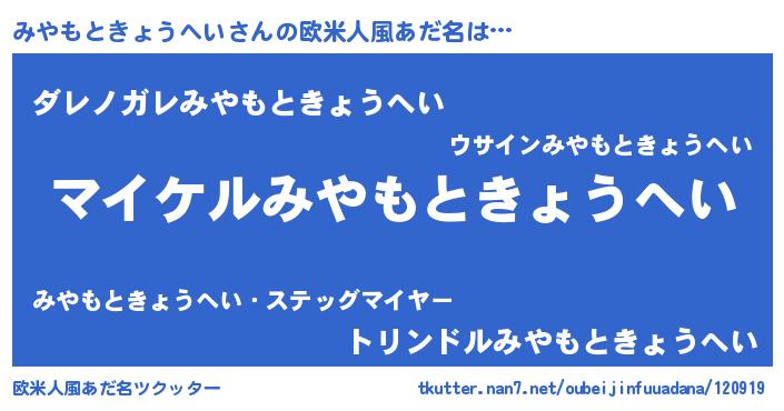 | 肩書あだ名 | 『みやもときょうへい社長』 |
