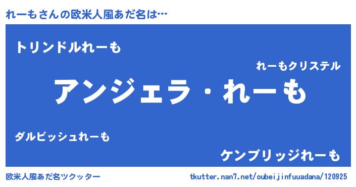 | 男性向けラノベタイトル風あだ名 | 『れーもに滅ぼされるだけの簡単なお仕事です』 |