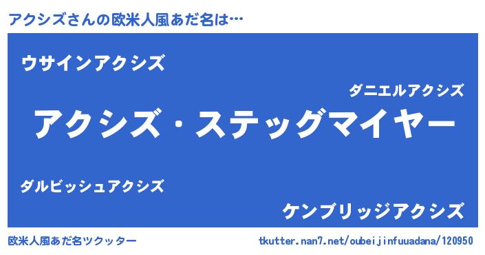 | ヒーロー風カッコイイあだ名 | 『銀牙騎士アク』『サイバー戦士アクシズ』 |