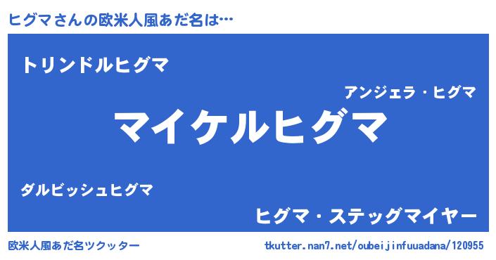 | ヘコむあだ名 | 『ヒグにゅー』『ヒグマ(震え声)』 |