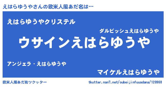 | 男性向けラノベタイトル風あだ名 | 『ダンジョンにえはらゆうやを求めるのは間違っているだろうか』 |