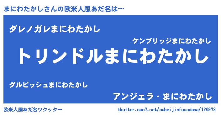 | 肩書あだ名 | 『まにわたかし上級大将』 |