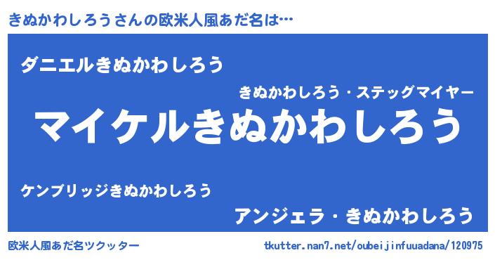 | ヒーロー風カッコイイあだ名 | 『スーパーキヌカワシロウ』 |