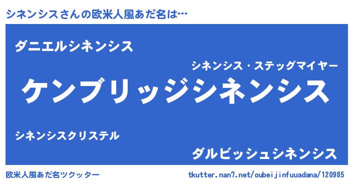 | 意味不明あだ名 | 『自称シネンシス』『永久保存シネンシス』 |