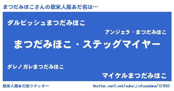 | ヘコむあだ名 | 『まつだみほこ(笑)』『まつっふぃ~』 |