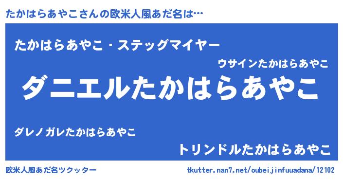 | ヘコむあだ名 | 『たかっ子』『たかはらあやこ(爆)』 |