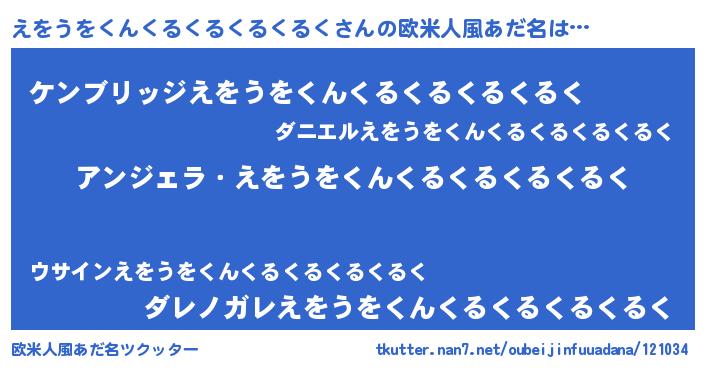 | 男性向けラノベタイトル風あだ名 | 『えをうをくんくるくるくるくるくに滅ぼされるだけの簡単なお仕事です』 |