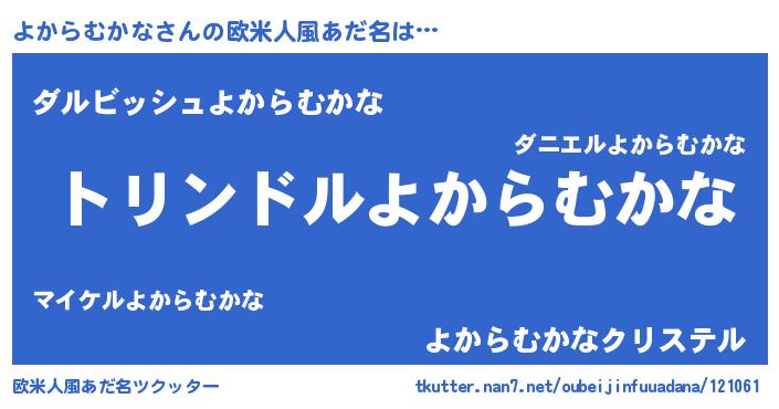 | 男性向けラノベタイトル風あだ名 | 『ヨカラムカナスレイヤー』 |