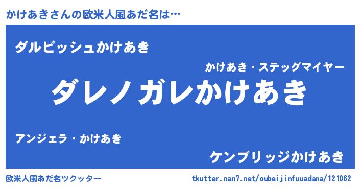 | 男性向けラノベタイトル風あだ名 | 『魔弾の王とかけあき』『緋弾のカケアキ』 |