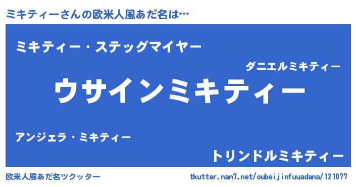 | 女子向けラノベタイトル風あだ名 | 『ミキティーの卵を拾いまして』 |