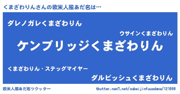 | 男性向けラノベタイトル風あだ名 | 『魔法科高校のくまざわりん』 |