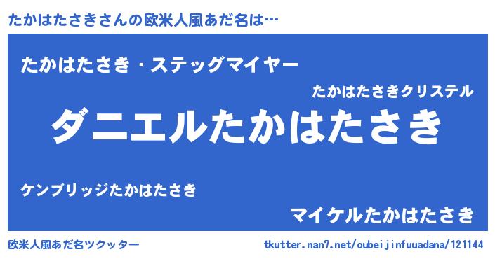 | 女子向けラノベタイトル風あだ名 | 『たかはたさき恋絵巻』 |