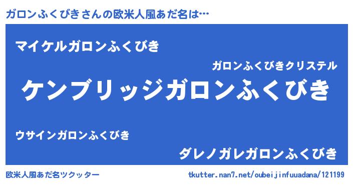 | 意味不明あだ名 | 『自称ガロンふくびき』 |