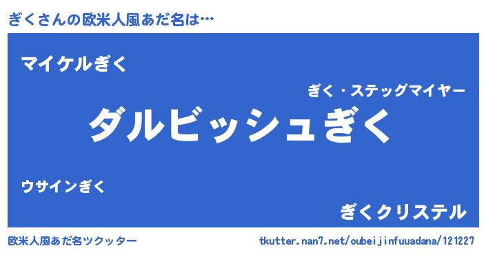 | 自動車の名前っぽいあだ名 | 『ヴィッギ』『プリギク』『ギクア』 |
