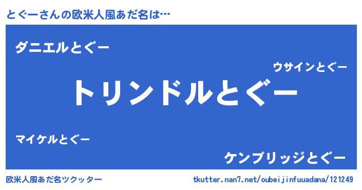 | 男性向けラノベタイトル風あだ名 | 『トグースレイヤー』『とぐーの憂鬱』 |