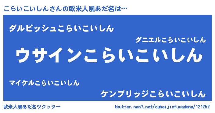 | 男性向けラノベタイトル風あだ名 | 『こらいこいしんの嫁は女の子じゃないと思った?』 |