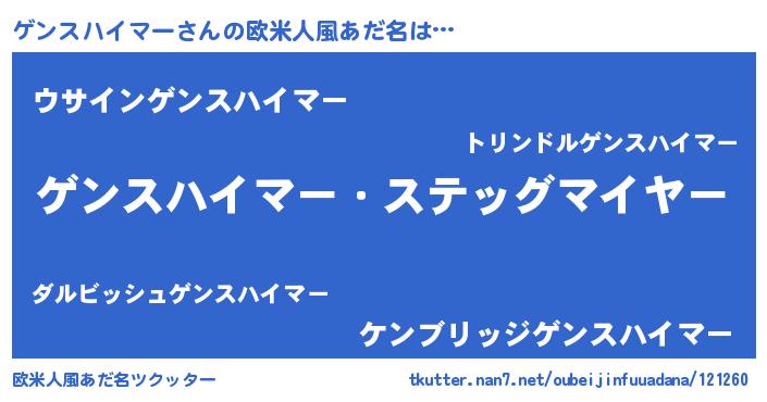 | 意味不明あだ名 | 『とにかく怪しいゲンスハイマー』 |