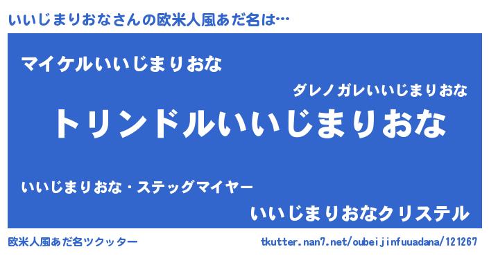 | 男性向けラノベタイトル風あだ名 | 『転生したらいいじまりおなだった件』 |