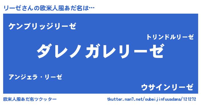 | 男性向けラノベタイトル風あだ名 | 『この素晴らしい世界にリーゼを!』 |