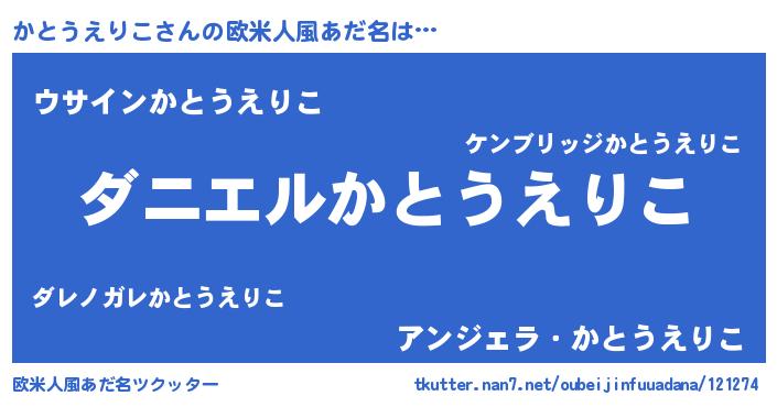 | 女子向けラノベタイトル風あだ名 | 『かとうえりこ夫妻のなれそめ』 |