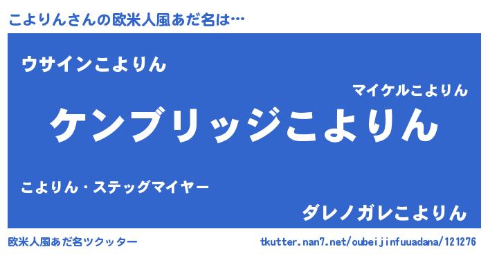 | 男性向けラノベタイトル風あだ名 | 『Re:こよりんから始める異世界生活』 |