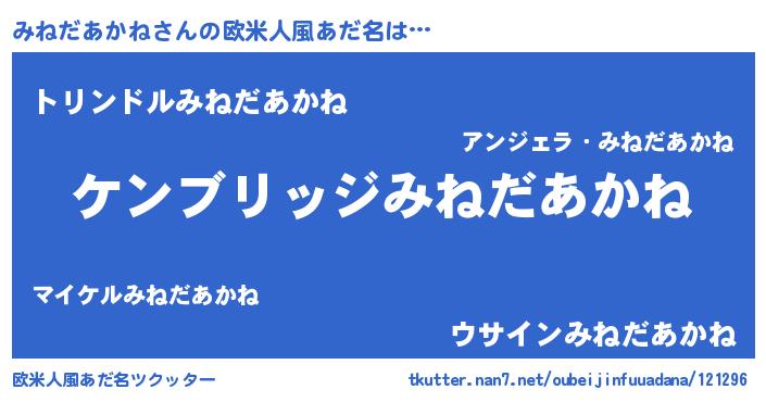 | 意味不明あだ名 | 『自称みねだあかね』 |