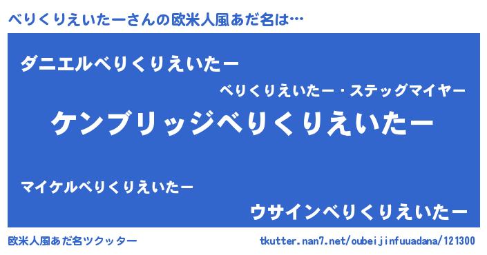 | 意味不明あだ名 | 『自称べりくりえいたー』 |