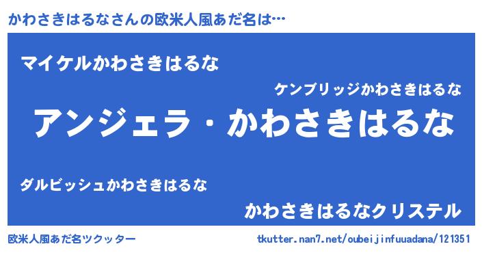 | 男性向けラノベタイトル風あだ名 | 『かわさきはるなに滅ぼされるだけの簡単なお仕事です』 |