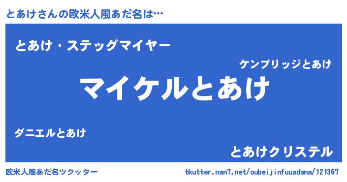 | ヒーロー風カッコイイあだ名 | 『スーパートアケ』『ウルトラとあけマン』 |