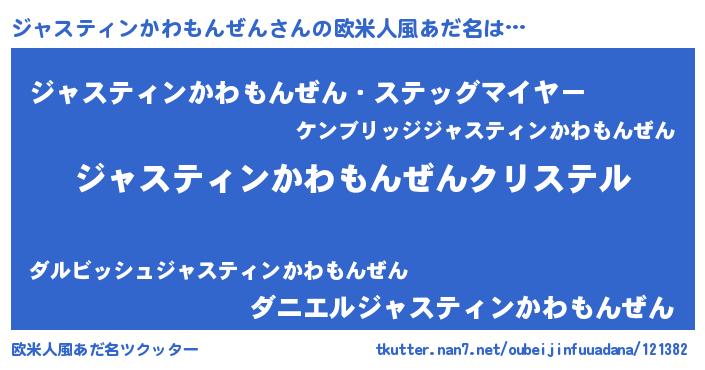 | 意味不明あだ名 | 『ジャスティンかわもんぜんフォーエバー』 |