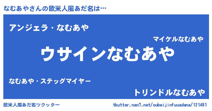 | 男性向けラノベタイトル風あだ名 | 『なむあやの嫁は女の子じゃないと思った?』 |