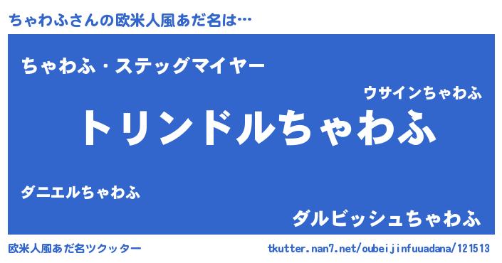 | 胡散臭い通販商品みたいなあだ名 | 『絶対に幸福をもたらす健康食品…その名も「ちゃわふ」』 |