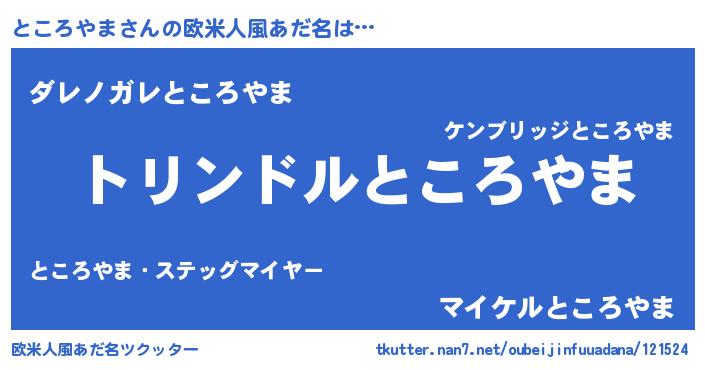 | 男性向けラノベタイトル風あだ名 | 『ところやま~年齢イコール彼女いない歴の魔法使い~』 |