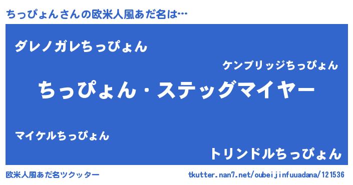 | 意味不明あだ名 | 『住所不定無職ちっぴょん(2歳)』 |