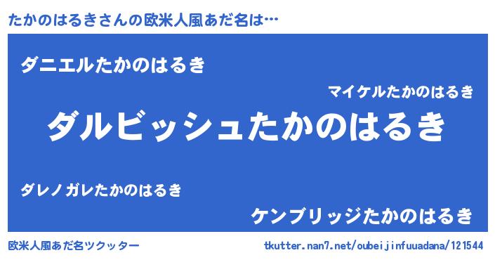 | 男性向けラノベタイトル風あだ名 | 『誰もが恐れるあのたかのはるきが、ぼくの専属メイドになるようです。』 |