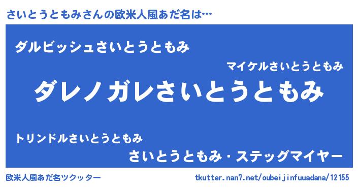 | ヘコむあだ名 | 『さいとうともみ(遠い目)』『さいもー』 |