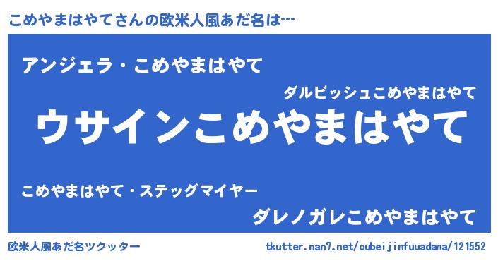 | 男性向けラノベタイトル風あだ名 | 『ダンジョンにこめやまはやてを求めるのは間違っているだろうか』 |
