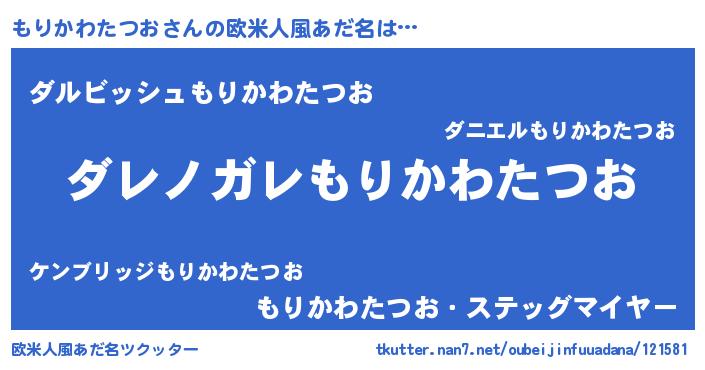 | 男性向けラノベタイトル風あだ名 | 『この素晴らしい世界にもりかわたつおを!』 |