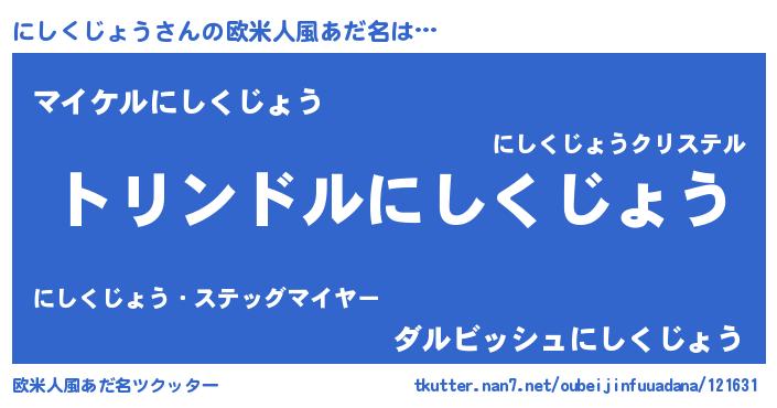 | 男性向けラノベタイトル風あだ名 | 『ニシクジョウスレイヤー』 |