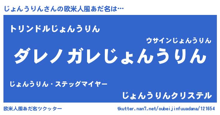 | 男性向けラノベタイトル風あだ名 | 『この素晴らしい世界にじょんうりんを!』 |